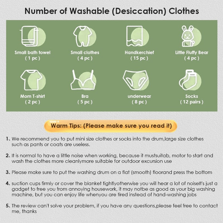 - [Water saving and energy saving] The mini portable washing machine has a single design, suitable for personal laundry. Portable washing machines not only save a third of water, but also save electricity than washing machines.