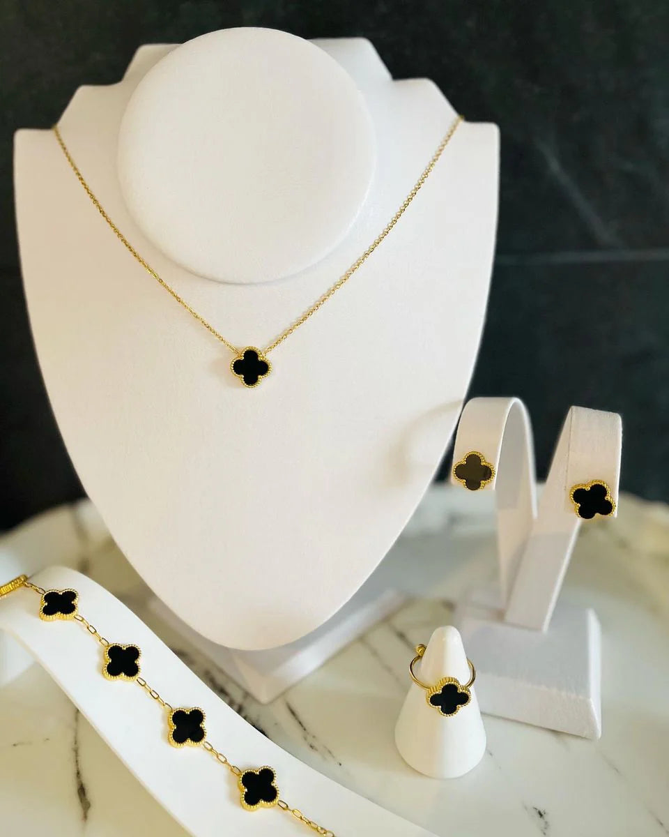 # **STAINLESS STEEL BLACK CLOVER JEWELRY SET – Mystical Elegance & Unmatched Durability**